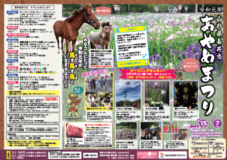 6月に入りました!(*^_^*)いよいよあやめの季節♪今年の「あやめまつり」も楽しい企画たっくさ〜んで皆様のおいでをお待ちしております。☆あやめまつり期間☆ 6月15日(土) 〜 7月7日(日) 営業時間 9時〜18時(6/15.22.29は20時30分まで営業) ※会場の状態やイベントの状況により変更の場合もあります。・オープニングセレモニー 6月15日(土)10時〜 水上ステージ ご祈祷・あやめの苗プレゼント(先着100名) ☆ ☆ ☆ イベント詳細はこちらから ☆ ☆ ☆昨年の様子をちょっとだけご紹介。▼はたらく自動車、ふうせんたけさん ▼長井おどり大パレード あやめの花ばかりでなく、ご家族みんなで楽しむことが出来る企画でいっぱい♪まつり期間中は、ぜひぜひあやめ公園に足を運んでみてくださいね(*^^)v☆ ☆ ☆ イベント詳細はこちらから ☆ ☆ ☆【この記事は、ながいファン倶楽部のブログです】
