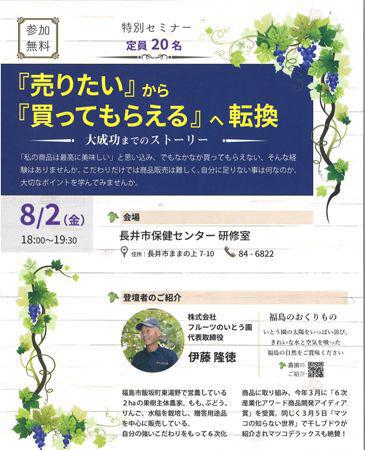 農産物などを使い自分の商品づくりにチャレンジしてみませんか?商品開発について、プロに教えてもらえる3回講座、参加費は無料です!商品開発と販売に大成功した農家さんの実体験を生で聞くことのできる特別セミナーも、参加費無料(^O^)/ぜひご参加下さい。★ お問い合わせは・・・長井市産業活力推進課 TEL 0238-87-0826【この記事は、ながいファン倶楽部のブログです】☆毎月1日・15日にファン倶楽部会員様へメールマガジンを配信♪▼前の記事・お申込はこちらから!