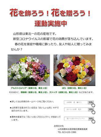 全国で新型コロナウイルスの感染者が出ていないたった5つの県。ご存じの通りもちろん”山形県”が入っています('ω')ノ県民性が質素堅実・・・でも花の生産量は東北一なんです!!そんなこんなで今年は卒業式や歓送迎会などが通常通りに開催されず、お花が余剰していましたよね。道の駅「川のみなと長井」ではささやかながら、もらい(送り?)損ねた花束を気分だけでも味わってほしいと♪▼県内産の花を使っていますまた、市内のお花屋さんでは美しいアレンジや花束を用意して皆様のお越しをお待ちしています。(写真提供:栄町”ムスメヤ花店”TEL:0238-88-2313) この機会に家の中を飾ったり、身近な人へのプレゼントにお花を購入してみませんか(*^-^*)【この記事は、ながいファン倶楽部のブログです】☆毎月1日・15日にファン倶楽部会員様へメールマガジンを配信♪▼お申込はこちらから!