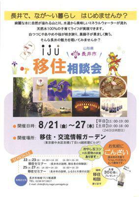 東京の移住・交流情報ガーデンで行われる移住相談会に長井市が参加します♪ 「田舎暮らしをしたい」と思っていても、生活環境・住む家・仕事など、いざしようとすると不安ですよね・・・(^_^;)ネットなどでは知ることの出来ない移住者の体験談や長井市の説明など生の声が聞けますよ!質問もその場で聞けて、不安も少しはなくなるのでは(^O^)山形県長井市移住相談会開催日時: 8/21(金)〜8/27(木) 【平日】11:00-19:00 【土日】10:00-18:00 (24日は休館日)開催場所: 移住・交流情報ガーデン(東京都中央区京橋1丁目1-6越前屋ビル1F)●移住セミナーの日程 22日(土)23日(日) 14:00〜14:20 16:00〜16:20 移住セミナー (長井市の説明、移住者の体験談) 25日(火)27日(木) 14:00〜14:20 16:00〜16:20 移住セミナー (長井市の説明、ふるさと大使のお話)※冷やし玉こんやお漬物の試食があります♪※期間内先着30名様に「長井の美味しい水」プレゼント!※随時移住相談承ります。興味のある方、田舎暮らしが気になる方、移住された方のお話を聞き今後の参考にしてみてはいかがですか(*^-^*)長井市のブースを発見したらお立ち寄りくださいね♪お問い合わせ先:長井市地域づくり推進課(TEL0238-87-0817)【この記事は、ながいファン倶楽部のブログです】☆毎月1日・15日にファン倶楽部会員様へメールマガジンを配信♪▼前の記事・お申込はこちらから!