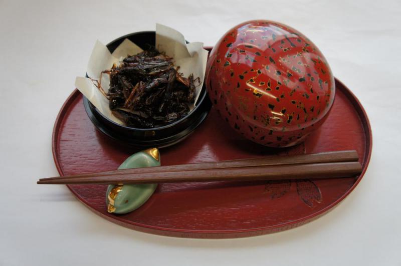 ▼【秋の珍味イナゴの佃煮♪】