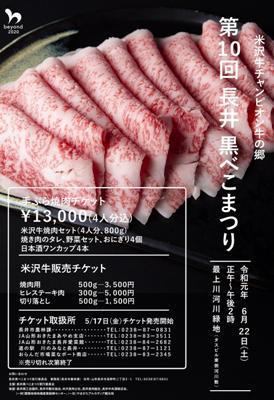 毎年大好評!≪長井黒べこまつり≫のチケットが5月17日(金) から販売になりました〜(o^∇^o)ノ今年の開催は、6月22日(土)正午から。※会場は最上川河川緑地(タス東側河川敷)になります。 去年と場所が違いますのでお間違えなく♪★焼肉セット(4人分)チケット15,000円★←(13,000円)≪セット内容≫ 長井産米沢牛 A5等級 (1s) ←(800g) おにぎり 4個 地酒ワンカップ 4本 野菜セット 焼肉のタレとろけるようなお肉をジュージュー!外で食べる焼肉はさらに美味しいですよ。みんなでワイワイ楽しんでくださいねー(*´u`*)/≪チケット取扱所≫・市農林課 (置賜総合市庁西置賜地域振興局2階) (TEL: 0238-87-0831)・道の駅「川のみなと長井」 (TEL: 0238-87-1121)・おらんだ市場 菜なポート (TEL: 0238-83-2345)・JA 山形おきたまあやめ支店 (TEL: 0238-83-3511)・JA山形おきたま愛菜館長井 (TEL:0268-84-2682)※チケットは売り切れ次第終了となりますので お求めはお早めに(^^)v【この記事は、ながいファン倶楽部のブログです】 ☆毎月1日・15日にメールマガジンを配信しています♪ ご希望の方は会員登録をお願いします。