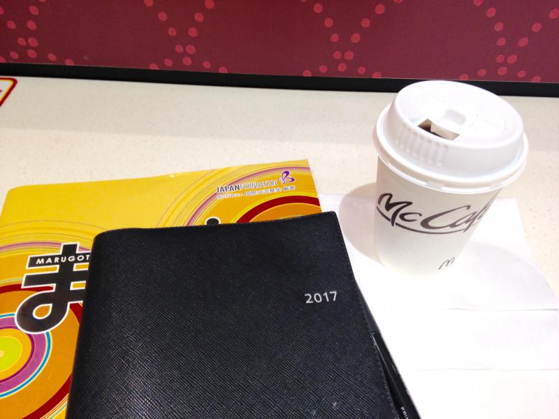 コーヒーショップのカウンターで