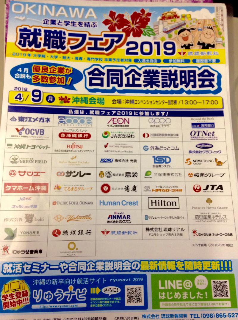 資料コーナーに、沖縄の合同企業説明会の案内が。