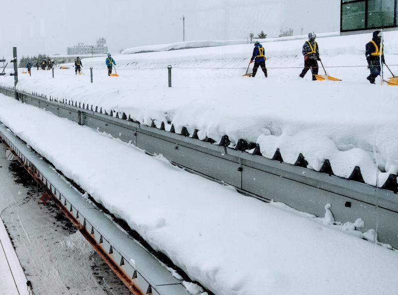 新庄駅ホームの屋根の雪下ろし