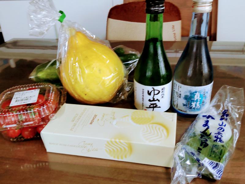地元の新鮮な野菜やお土産を買ってきました。