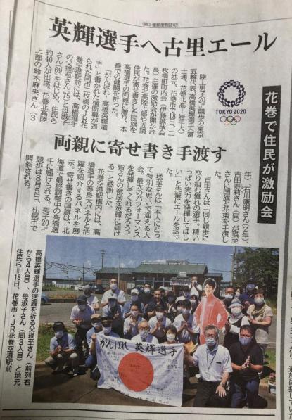 「英輝選手へ古里エ−ル/両親に寄せ書き手渡す…花巻で住民が激励会」―。7月19日付の地元紙「岩手日報」の社会面に踊る大見出しに身がすくんだ。花巻北高出身の競歩選手、高橋英輝さんが五輪選手に選ばれたことを喜ぶ記事で、地域住民や陸上部の後輩やOBらが日の丸(日章旗)に激励の寄せ書きをしたため、両親とともに写真に収まっていた。当然のことながら、五輪代表を祝福する気持ちに変わりはない。と同時に私の耳元には母親が嗚咽(おえつ)をこらえながら、口にした言葉がよみがえった。「父さんはね、隣組の人たちが振る日の丸の旗で戦地へ送られたけど、戻ってきたのはお骨(こつ)ではなく、たった一本の小枝だけ。骨箱の中でコロンコロンと音を立てて…」