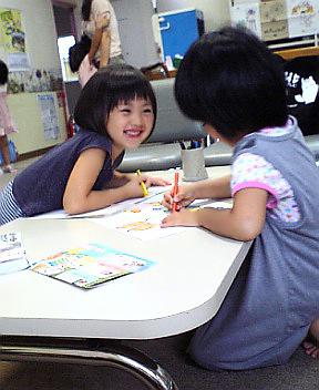 カエデはこれからヤマハ音楽教室♪眠くなって行きたくないと言い始めないように、40分も早く来てぬりえに勤しんでおりやす( ̄▽ ̄;)