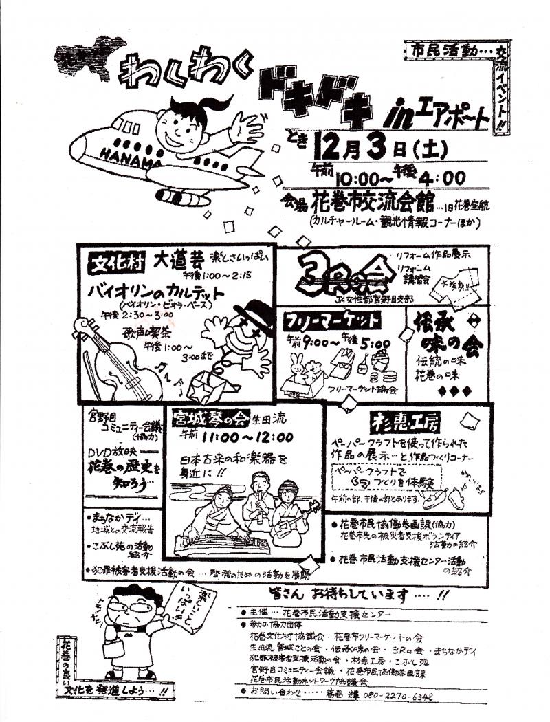 12月3日(土)午前10時から午後4時まで、花巻市交流会館(旧花巻空港ターミナルビル)にて、どなたでも参加できるイベントやってます。(入場無料)