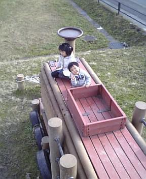 二人ともビビりながら泣きながら転びながら遊ぶ。
