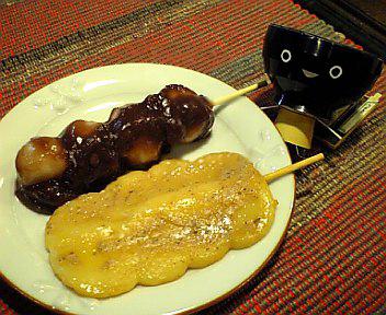 お茶餅と串団子(あんこ)どちらも美味しい〜(>_