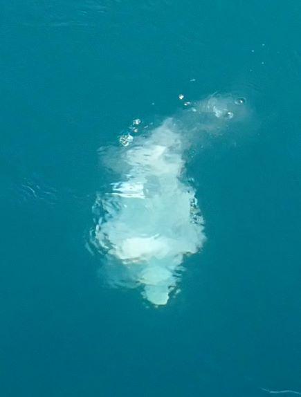 妻の亡骸は孫たちが云うように、本当にジュゴンに変身したかのようにサンゴ礁の海に還っていった=2018年12月1日、沖縄・石垣島の名蔵湾沖で