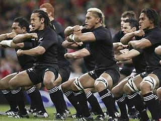 オールブラックスが披露する迫力満点の「ハカ」踊り=インターネット上に公開の写真から