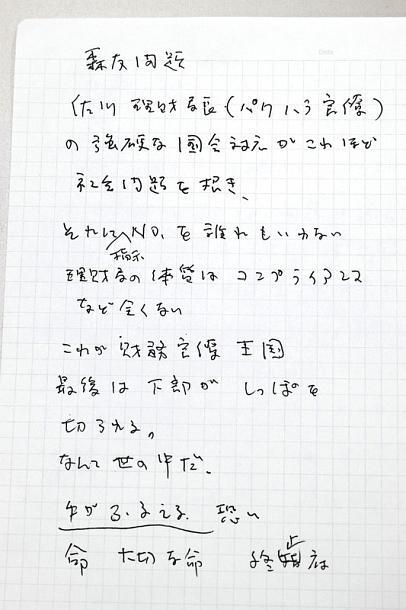 不ぞろいな文体と「命」と繰り返される叫びに赤木さんの追いつめられた「絶望」と「断念」が透けて見える=インターネット上に公開の写真から