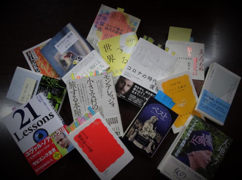 緊急事態宣言が発令された前後から、日を経ずして本が届くようになった。差出人はきまって「コロナ神」である。もう20冊以上になったが、その中の一冊の『大地よ!』が朝日新聞一面の長寿コラム「折々のことば」の筆者である哲学者の鷲田清一さん(70)の手元にも送られてきたらしい。この本の一部を引用して、鷲田さんはこう記している。「大地、火、水、風。生きとし生けるものを養うもの。それらをアイヌの人々は神(カムイ)と呼び、他の生き物たちと奪いあうのではなく分かちあうものと固く思ってきた。その文化が潰(つい)えかけている。だから今はアイヌを『語る』よりも『起こしたい』のだと」(5月28日付) 本の副題に「アイヌの母神」とある。“母神”とはアイヌ語で「フチ」を連想させる表現で、おばあさんに対する尊称でもある。筆者である宇梶静江フチ(87)と出会ったのはもう30年以上も前のことである。「アイヌはね。いつだって、カムイと一緒なんだよ」とフチは口を開くとそう言った。行きつ戻りつ、その世界観を垣間見る日々を過ごしてきた。同書はコロナ禍のさ中の3月3日に発行された。表紙裏に講演録の一節が載っている。 「いま私たちは、現代文明のなかで、人間とは何か、人間らしい生き方とは何かを問われています。アイヌの精神性は現在、地球が抱えているさまざまな困難に光を投げかけることができると思っています。そして、その先住の民の光は、人間であることの根源から生まれてくる光なのだと思います」―。20年近く前、ハ−バ−ド大学で行われた講演の一部である。コロナ禍に遭遇した際、私は真っ先に宇梶フチのこの言葉を思い出した。そして、思った。「コロナとは、カムイモシリ(神々の国)から地球という惑星に遣(つか)わされた新入りのカムイではないのか」と… 「パヨカカムイ」(徘徊する神=病気の神)―。アイヌ民族にとっては「病気」もカムイ(神)の眷属(けんぞく)であることについては、当ブログ(4月5日付と同24日付)でも再三、触れてきた。だから、今回の新型コロナウイルスもアイヌの精神世界ではれっきとしたカムイの一員なのである。地球狭しとウイルスをまき散らし続ける「コロナ神」からのメッセ−ジが耳元に聞こえてきた。「地球人のあなた方と仲良くしないことには、わしらも住む場所がだんだん、狭くなってしまう。ともに生きるしかないじゃないか」― ※ 特別定額給付金(10万円)の使い道について、あれこれ考えた。齢(よわい)80歳にして今さら「新しい生活様式」でもあるまい。だったらいっそのこと、残り少ない人生をコロナ神との対話に費やすのも一興ではないか。「コロナよ、お前さんはなぜ今ごろになって、我われの前に突然、姿を現わしたのかい」…。というわけで、勢いその関係の本が多くなった。残余金はまだある。どんな本が届くのか、これからも楽しみである。以下、6月3日現在のコロナ神から贈呈本一覧〜 ●「まつろわぬ者たちの祭り―日本型祝祭資本主義批判」(鵜飼哲著)●「郷愁―みちのくの西行」(工藤正廣著)●「方丈記私記」(堀田善衛著)●「ペスト大流行―ヨーロッパ中世の崩壊」(村上陽一郎著)●「病魔という悪の物語―チフスのメアリ−」(金森修著)●「感染症と文明―共生への道」(山本太郎著)●「ゼロリスク社会の罠―『怖い』が判断を狂わせる」(佐藤健太郎著)●「21Lessons―21世紀の人類のための21の思考」(ユヴァル・ノア・ハラリ著)●「モンテレッジォ―小さな村の旅する本屋の物語」(内田洋子著)●「コロナ禍の時代の表現」(新潮2020・6)●「ペスト」(ダニエル・デフォ−/平井正穂訳)●「大地よ!アイヌの母神、宇梶静江自伝」(宇梶静江著)●「コロナの時代の僕ら」(パオロ・ジョルダ−ノ著)●「人は、なぜ他人を許せないのか」(中野信子著)●「カタストロフ前夜―パリで3・11を経験すること」(関口涼子著)●「サル化する世界」(内田樹著)●「感染パンデミック―新型コロナウイルスから考える」(現代思想5)●「幻化」(梅崎春生著)●「山海記」(佐伯一麦著)●「アイヌと神々の物語―炉端で聞いたウウェペケレ」(萱野茂著)●「生物と無生物のあいだ」(福岡伸一著)●「呪文」(星野智幸著)●「思想としての」(河出書房新社編) (写真は「コロナ神」からプレゼントされた本の一部。もう少し届きそう。待ち遠しい) 《追記》〜コロナ神へのカムイノミ(神への祈り) コロナ拡大を受け、北海道弟子屈町のアイヌ民族の有志らが18日、病気の神が人間に近づかないよう祈りの儀式を行った。民族衣装をまとった男女約40人が、病気の神「パヨカカムイ」に向けて思い思いの踊りを披露。音楽に合わせ、魔よけの効果があるとされるクマザサで宙を突いたり、両手で持ったアイヌ文様の布を上下左右に振ったりした。「弟子屈町屈斜路古丹アイヌ文化保存会」の豊岡征則会長によると、アイヌ民族の共生の精神に基づき、儀式は病気の神を退治することを目的にしなかった。「儀式で『何とか鎮まりください。お互いに