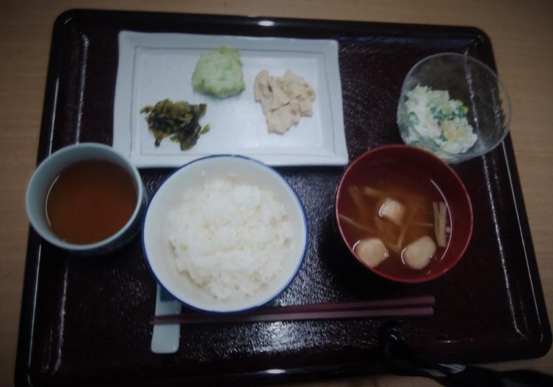 ある日の施設の朝食(500円)。口にするまでもなく、一目瞭然で「350円」に軍配!?