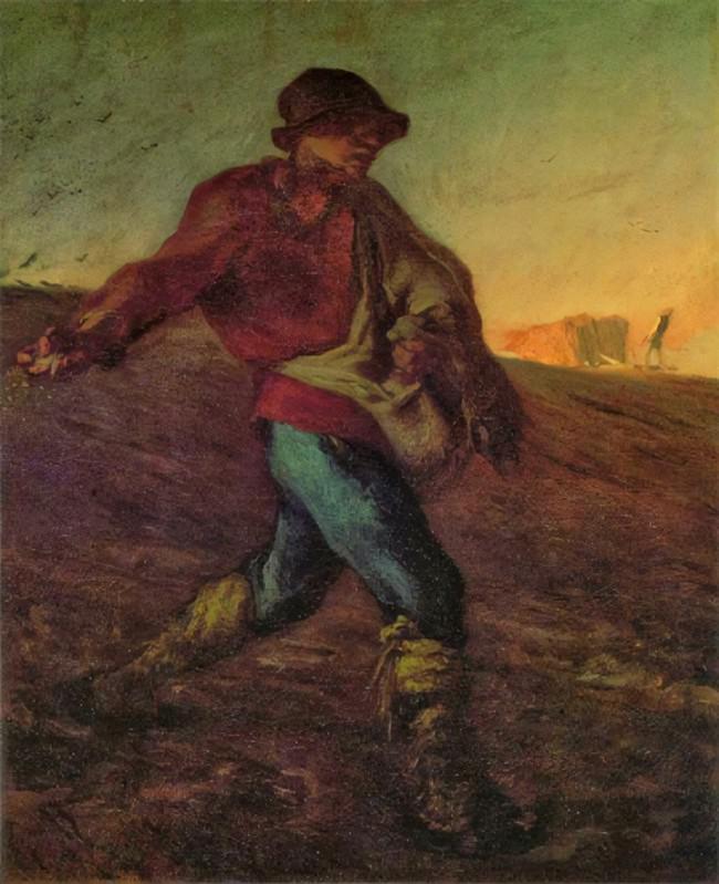 まさみちさんが「イーハトーブ」の大地(黒キツチ)にまいたタネは「マコトノクサノタネ」(宮沢賢治)だった。写真はミレーの代表作「種蒔(ま)く人」=インターネット上に公開された画像から)