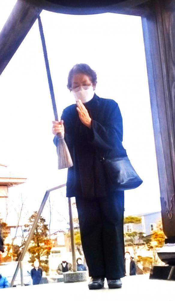 この日をこんなに怒りに震えながら、迎えたのは初めてである。「天災は忘れた頃にやってくる」と言ったのは物理学者の寺田寅彦だが、年明けに襲いかかった能登半島地震は国政を司(つかさど)るべき為政者たちが東日本大震災など過去の災害の記憶と教訓をきれいさっぱり、忘却の彼方に捨て去ったまさに、その時にねらいを定めるように起きたのではないかとさえ思いたくなった。支援体制の信じられないほどの遅れにイライラしながら、私はある政府高官の無神経は言葉を思い出していた。 「(3・11は)まだ、東北、あっちの方でよかった。首都圏あたりだと莫大、甚大だったと思う」―。震災の6年後、当時の今村雅弘復興相はこう語り、被災者の怒りを買った。派閥の政治資金パーティーの席上での発言だったということも今の状況とピッタリ重なる。半島という地理的条件が支援の遅れを招いたという表向きの話の背後から、こんな声がもれ聞こえてくる。「日本海に突き出た半島だからまだ、よかった」―。発災から2か月半近くがたつ今も、ライフラインの復旧さえ追いついていない惨状の中で、永田町界隈は政治とカネと権力闘争に明け暮れている。“棄民”という言葉が頭をかすめた。 「アラユルコトヲ/ジブンヲカンジョウニ入レズニ/ヨクミキキシワカリ/ソシテワスレズ」―。宮沢賢治の詩「雨ニモマケズ」の中にこんな一節がある。受難者に寄り添い、その悲しみを決して忘れてはいけないというメッセージである。こともあろうに、このイーハトーブ(賢治の理想郷)の地を地盤とする二人の国会議員がその戒めに泥を塗るようなスキャンダルを引き起こし、そのモラルの崩壊(モラルハザード)に日本中が騒然となっている(9日付当ブログ参照=二人を神輿に担ぎあげた写真の輩も同罪)。“赤ベンツ不倫”と“口移しチップ“のご仁たちは一体、どんな気持ちでこの日を迎えたのだろうか。この日、挙行された「岩手県東日本大震災津波追悼式」に当然のことながら、この”時の人”の姿はなかった。 午後2時46分―。花巻市内の寺では13年前のこの時刻に合わせ、被災者や支援者が鐘を突きながら、手を合わせた。伊藤ヤスさん(87)の姿もあった。あの日、沿岸被災地の大槌町の自宅はあっという間に津波に飲み込まれ、夫も帰らぬ人となった。その年のうちに当地に移り住んだ。過日、市内の整形外科医でバッタリ会った。「膝が痛くってね。で、あんたは?」。足元が若干、おぼつかなくなって病院を訪れた私にヤスさんはニッコリほほ笑んで言った。「足腰が弱るのは順調に老いてる証拠。いただいた命なんだから、大事に生きなくては…。あんたは私より三歳も若いんだからね」― 珠玉の言葉をもらったような気持になった。「3・11」から「1・1」へ…。生きることの大切さを教えてくれたのは実は“被災者”の側ではなかったのか。私はこの日、84歳の誕生日を迎えた。 (写真は鐘をつき、手を合わせる伊藤さん=3月11日午後、花巻市愛宕町の妙円寺で)