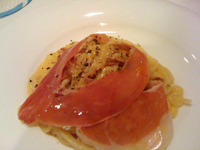 パンチェッタ風カルボナーラ・生ハム添え