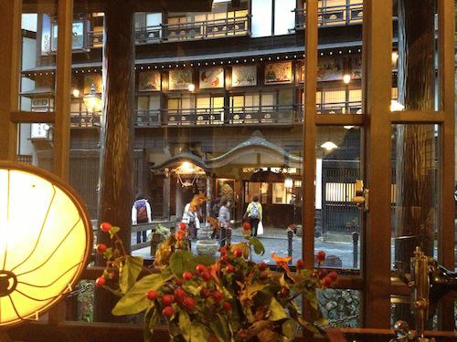 夕暮れの美しい銀山温泉の光景を眺めながらのCafe・・・