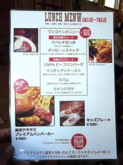 ワンコインランチメニュー。