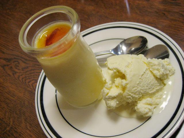 ランチ&ディナー 三幸の「自家製プリン&バニラアイス」です。