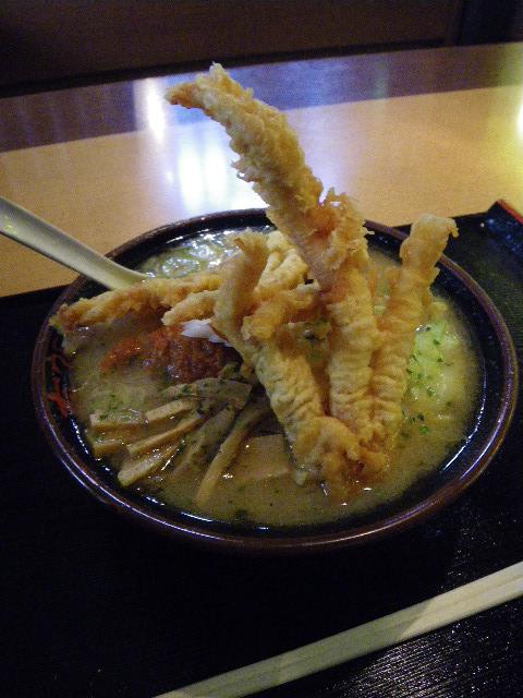 巨大なげそ天2つがどんとのっかってます。