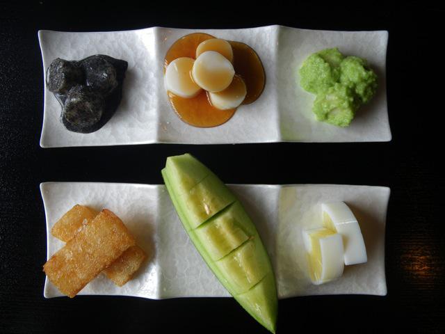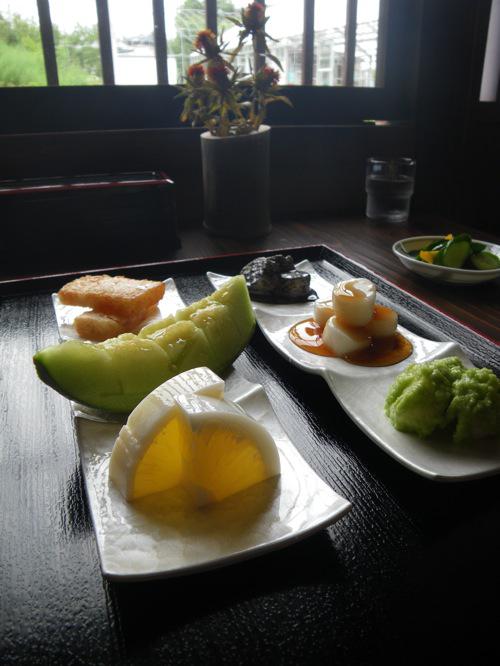 しみ餅、メロン、寒天、お茶、漬物・・・