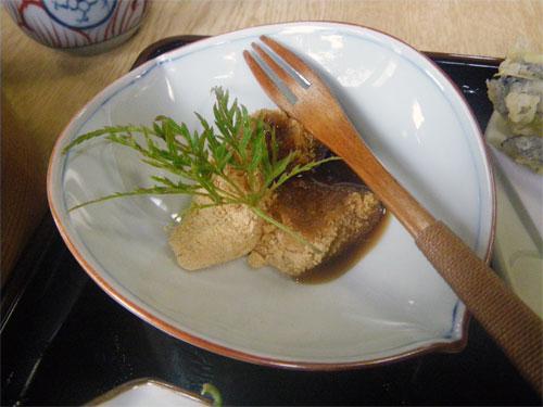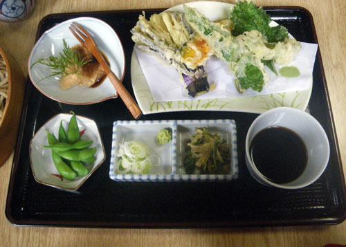 季節の天ぷらに枝豆やわらび餅がセットになった