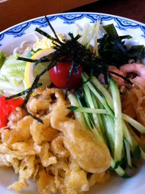 冷やし中華ではなく冷やしぶっかけたぬき蕎麦です。