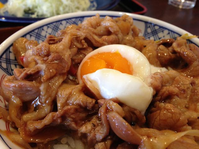 甘辛く焼いた三元豚の焼き肉に半熟卵。