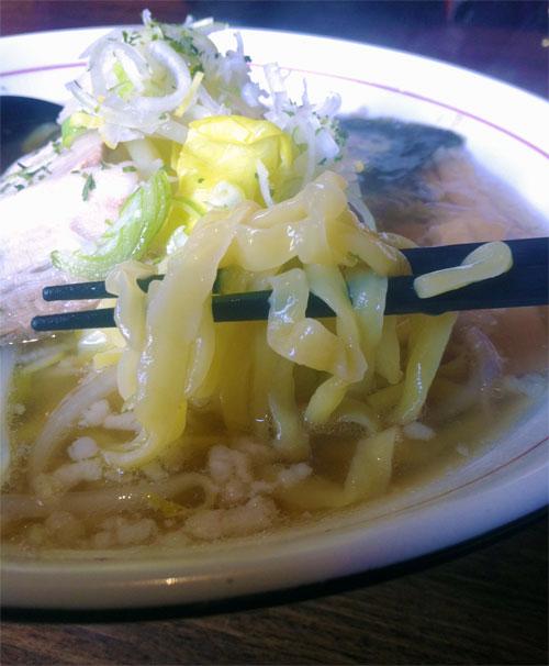 平打ちの太ちぢれ麺と