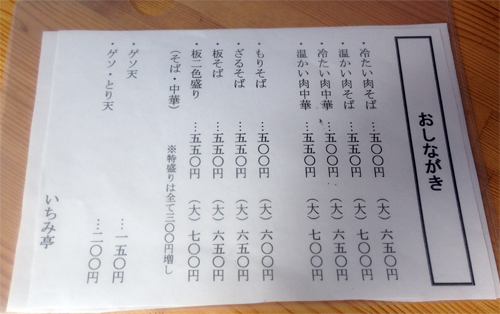 ▼肉そば処いちみ亭《冷たい肉蕎麦》天童市鎌田本町