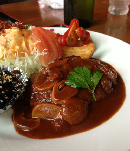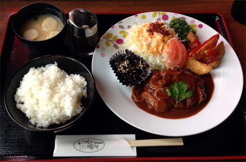 日替わりランチのデミグラスハンバーグセット。