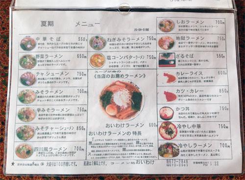 おいわけメニュー