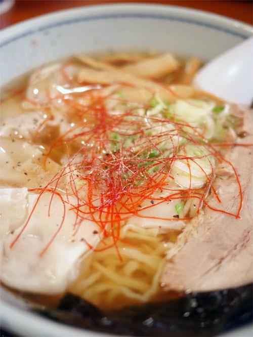 昔ながらのあっさり醤油味のワンタンメン。