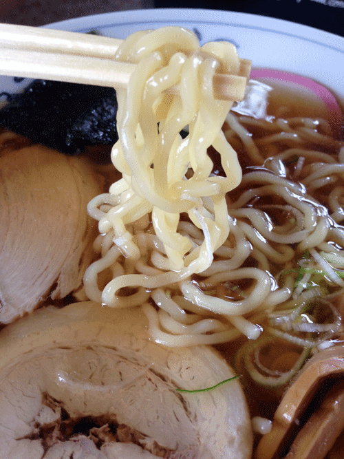 昔ながらの中華そば。縮れ中太麺はもちもちでのどごしよし。スープは、やさしいたまり風味をしっとり味わえる。