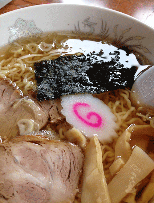 米沢ラーメン系の縮れ細麺に透明感のある飴色の澄んだスープが絡みます。