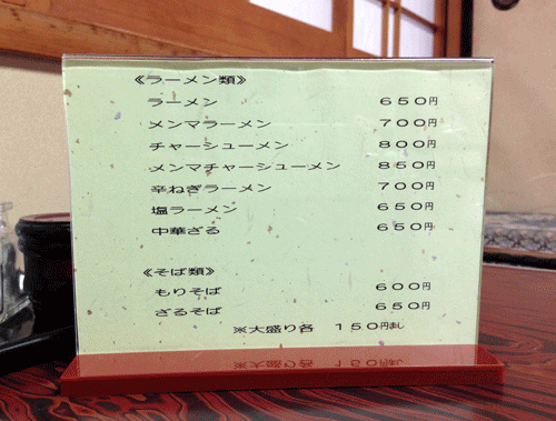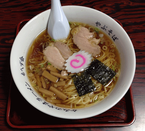 JRかみのやま温泉駅近くの創業大正八年 不勉強の親玉「いく代やぶそば」の名物ラーメン。