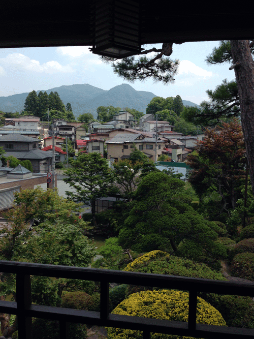日本庭園越しに三吉山を望みます