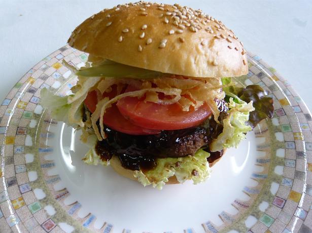 これにレタスやトマト、ピクルスをサンド。出来上がりはかなり分厚くなりますが食べ応えは十分です。