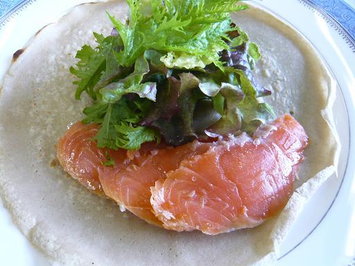 ▼ジュアン「自家製スモークサーモンとそば粉のクレープ」