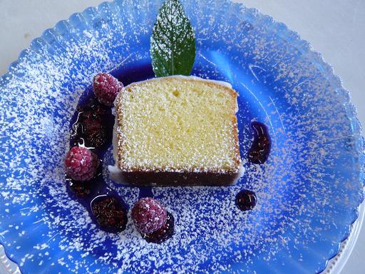 写真のケーキもレモン風味にして作って清涼感をだして旬のフランボワーズとそのジャムを添えています。