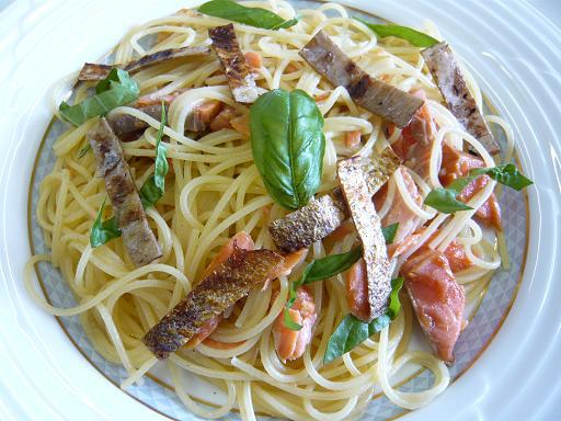 ▼ジュアン「自家製スモークサーモンのパスタ」