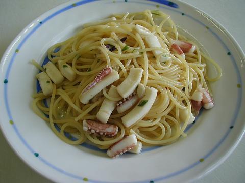 次の写真は、出来上がったピペラードにタマゴを混ぜてスクランブルエッグにして盛り付けた上に豚肉を焼いて盛り付けたものです。