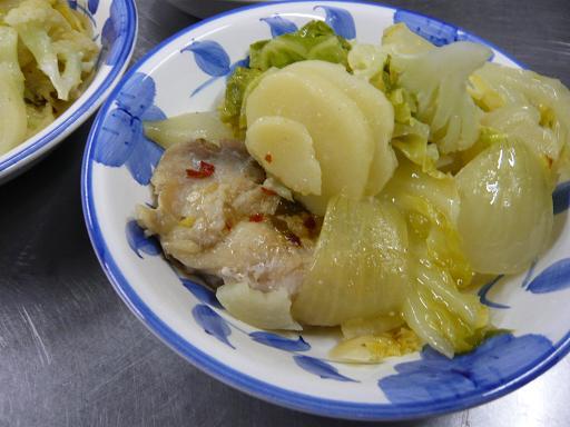 写真は、お賄いに先日紹介した「ちじれキャベツ」を使って鶏肉とジャガイモに自家製ラー油を振りかけて蒸し煮にして見ました。