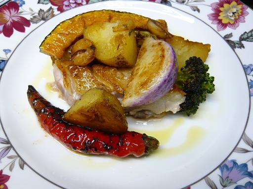 写真上は地鶏とジャガイモのローズマリー風味ロースト。