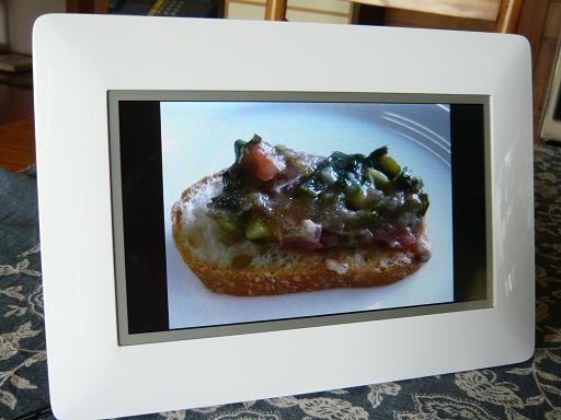 そこで息子から提案があり、この機械にSDカードも入るので毎日ブログ用に取り貯めてある写真を入れてお店の中に置いたら・・・!