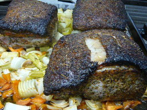 写真は明日のぶんどの会の為のローストポーク 「かせきのたまご」の仕込み中でこの焼きあがった肉をパートで包んでかせきのたまごに仕上げます。