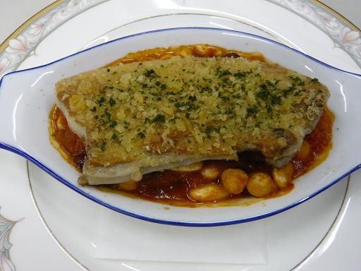 写真は、「塩漬け豚肉のパセリパン粉焼き、4種豆の煮込み」